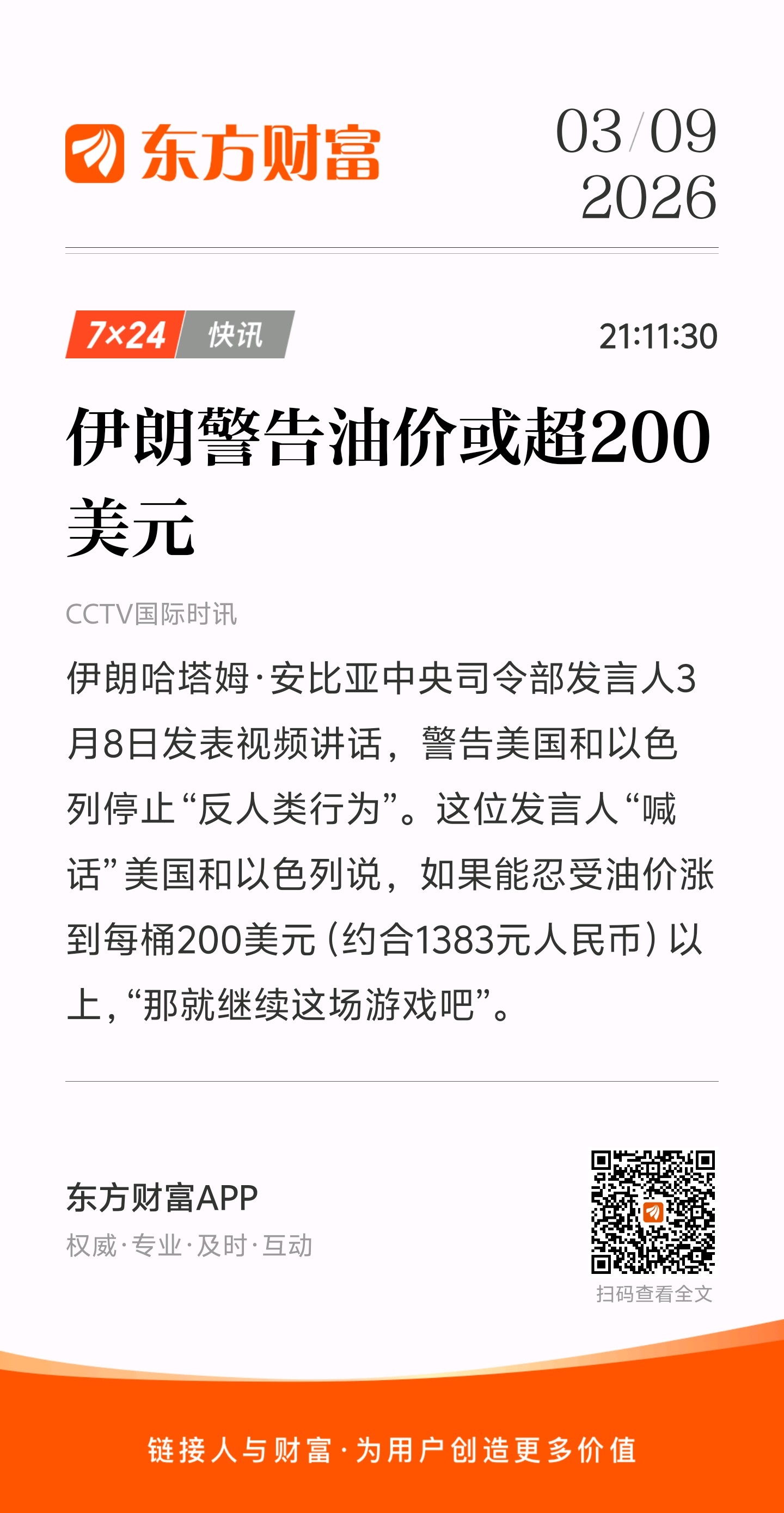 $洲际油气(SH600759)$ $中国石油(SH601857)$ $金牛化工(SH600722)$ 伊朗发言人看好石油涨到200,个人认为,只要趋势还在,可以继续关注,很多人涨了吹,跌了踩,实际上没啥必要,看好就买,不看好就卖,我们只是站在趋势的一边罢了,祝你成功