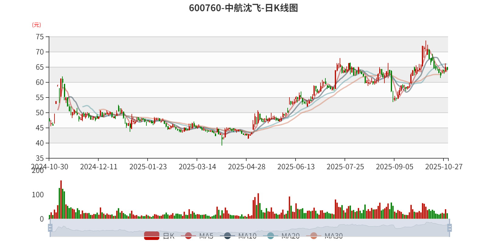 以10月29日收盘价计算,中航沈飞目前市盈率(TTM)约为61.89倍,市净率(LF)约8.33倍,市销率(TTM)约4.77倍。