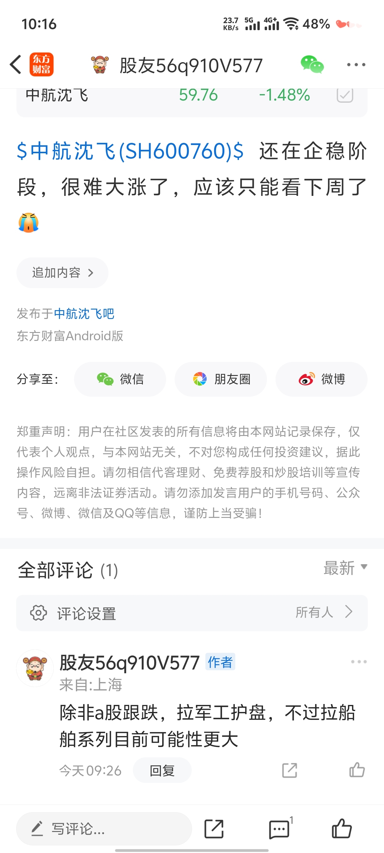 $中航沈飞(SH600760)$ md这东西跟我想的一样不争气,亏麻了,还是拉船舶系了,今天微收红10的可能性,保持现在大跌40,小跌50可能性。大家一起骂吧,闲着也是闲着