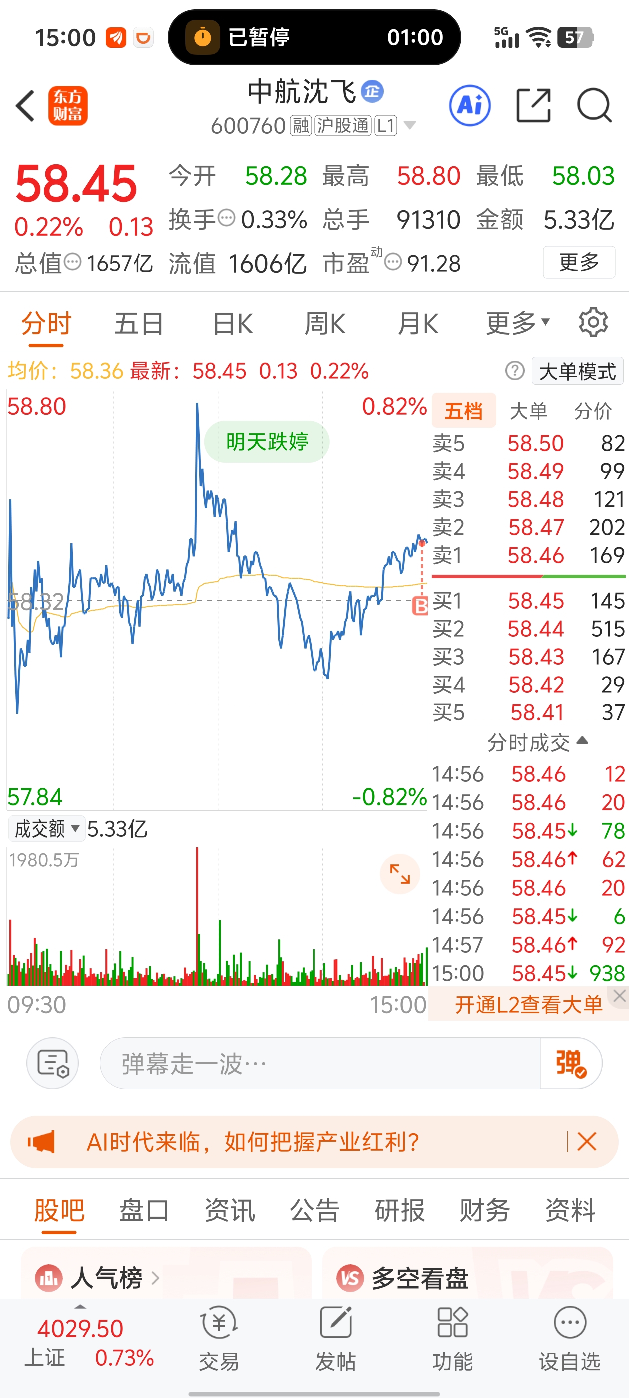 $中航沈飞(SH600760)$ 忍不住了,尾盘贷款6万梭哈了