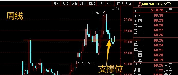 $中航沈飞(SH600760)$ 中期趋势还算是不错的,只不过中间走势略微跌宕起伏。周线来看主要是盯着黄色横线的支撑情况,同时日线盯着脚底大均线57.26位置的防守。周线日线合并在一起观察,能稳住问题不大,继续震荡看涨,但有效跌破就要注意破位风险了,需要控制仓位应对。