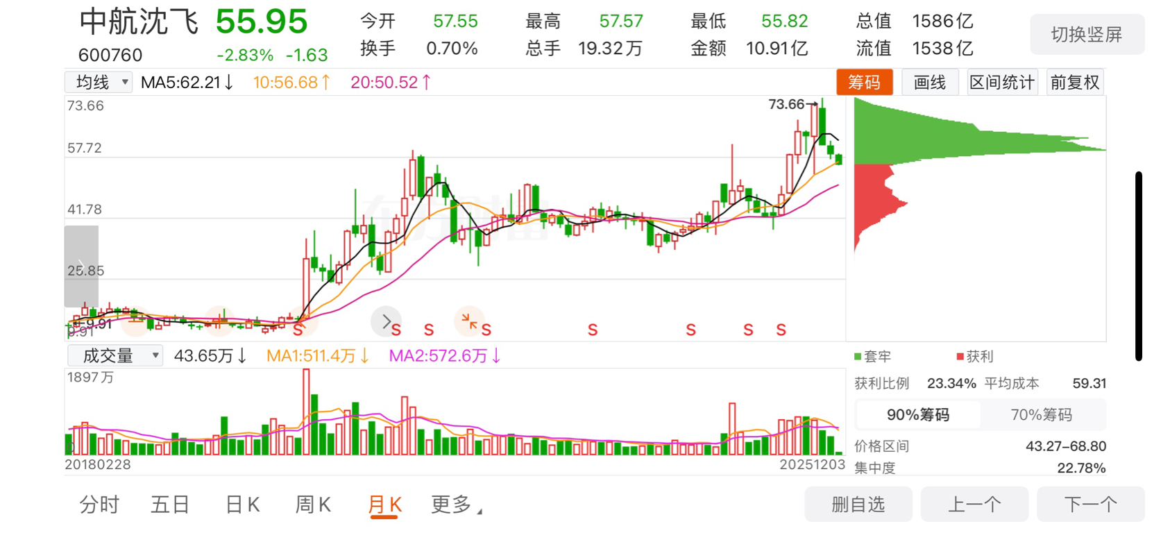 $中航沈飞(SH600760)$ 月线连跌三月,具备反弹的条件