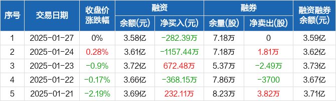安徽合力:融资净偿还282.39万元,融资余额3.58亿元(01-27)