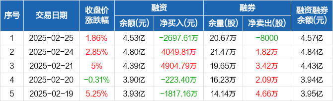 安徽合力:融资净偿还2697.61万元,融资余额4.53亿元(02-25)