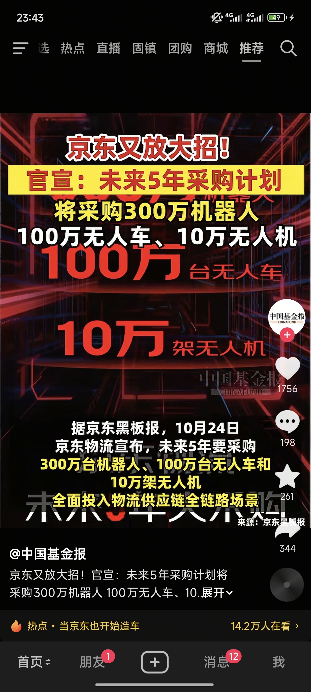 京东如果采购合力100万台合力无人车,假设20万一台,20*100就是2000亿