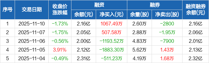 安徽合力:融资净买入1067.49万元,融资余额2.16亿元(11-10)