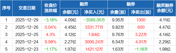 安徽合力:融资净偿还3589.06万元,融资余额4.09亿元(12-29)