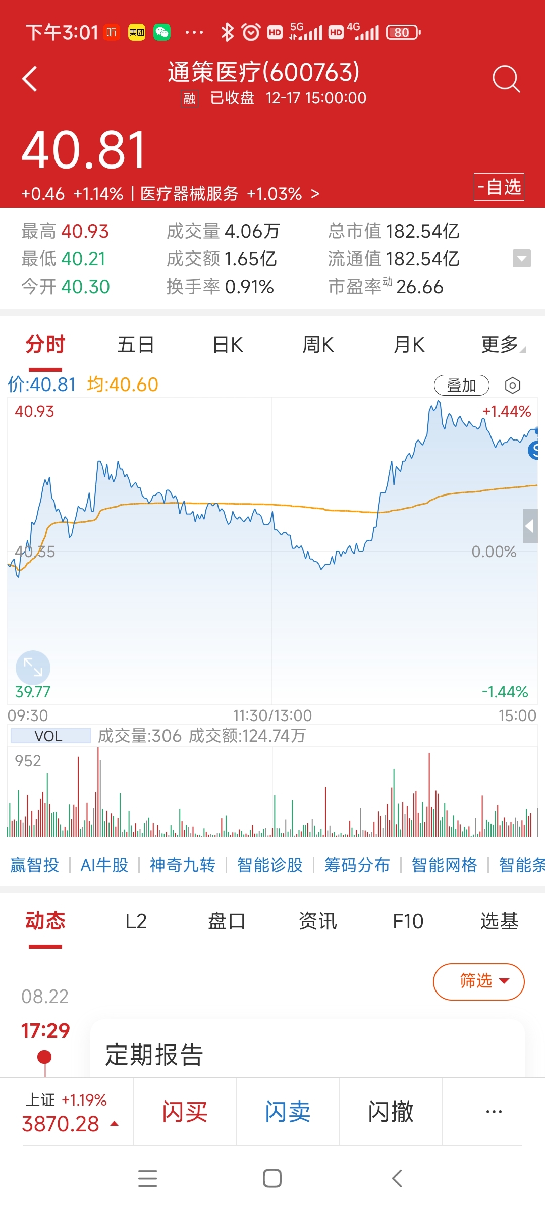 $通策医疗(SH600763)$ 把昨天加仓的卖了,慢慢玩。