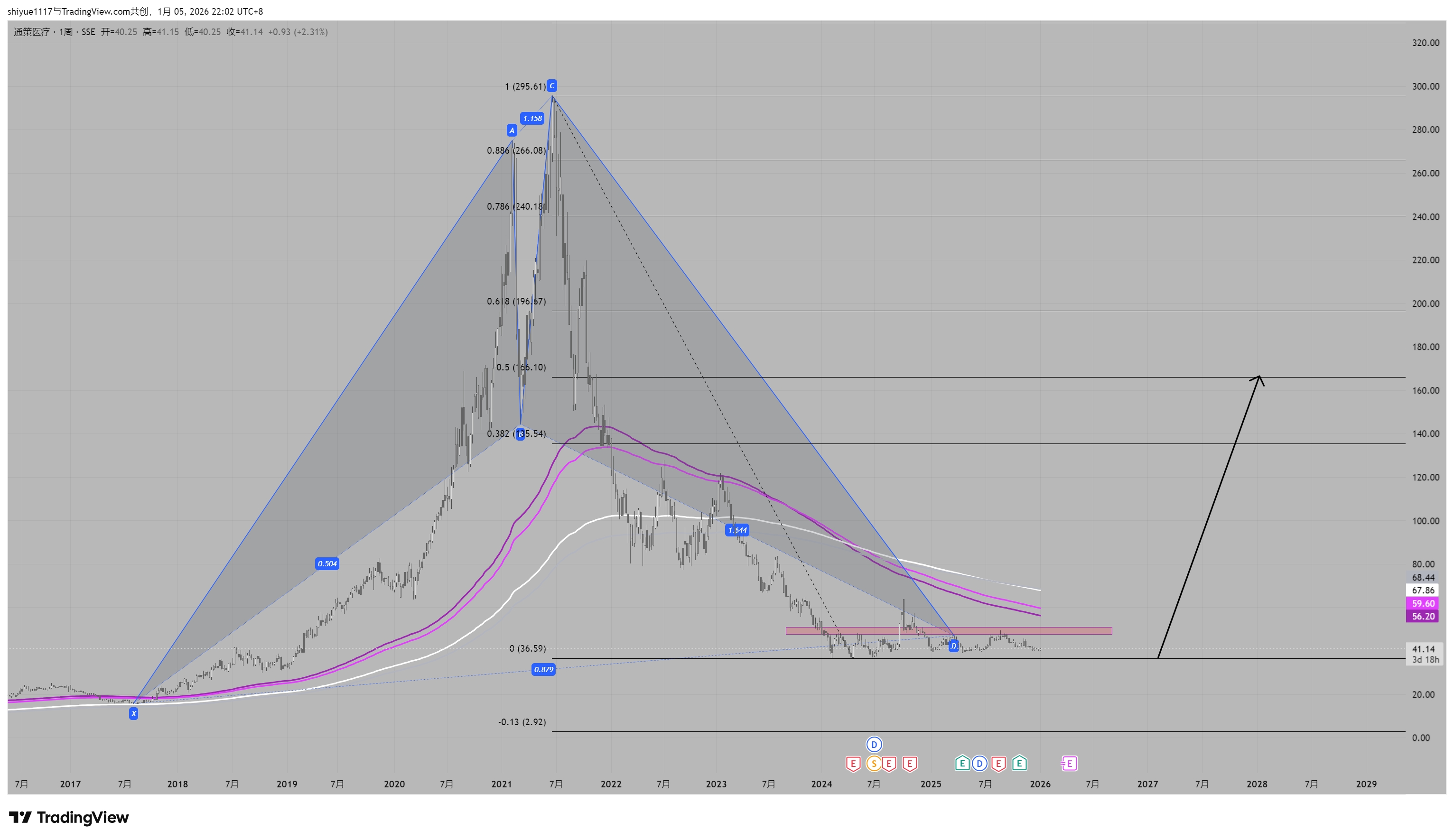 $通策医疗(SH600763)$ 大级别鲨鱼形态,未来2-3年目标为166附近。