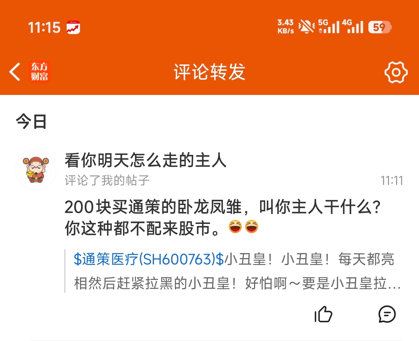 $通策医疗(SH600763)$ 小丑皇!加油!拉黑太有意思了!小丑就是胆小,骂完人马上拉黑,要不然得怕死了,哈哈哈哈哈哈哈哈。