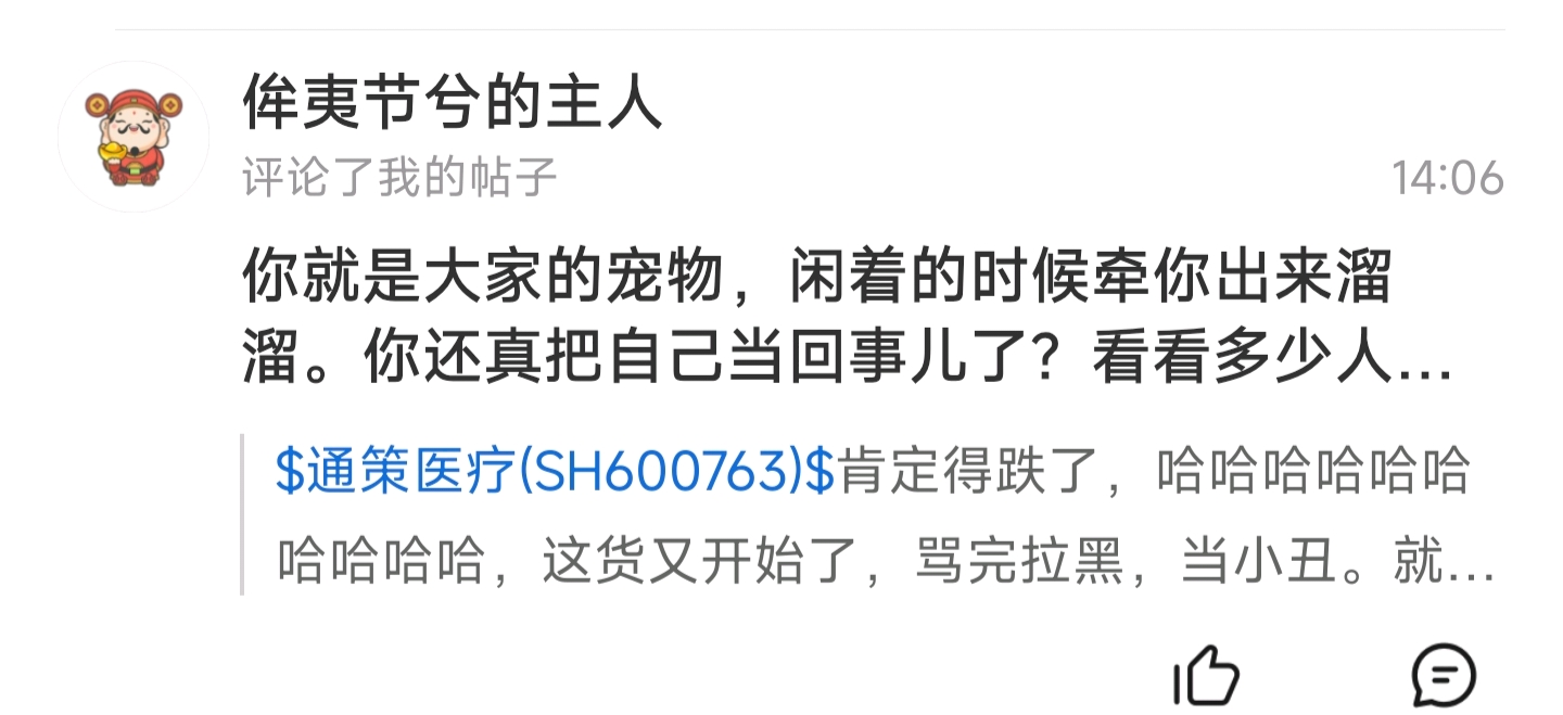 $通策医疗(SH600763)$ 注意字数!你拉黑我之后我点不开看不到后面的字。别发消息给自己看。说了多少遍了,要不你就别当小丑别拉黑我。