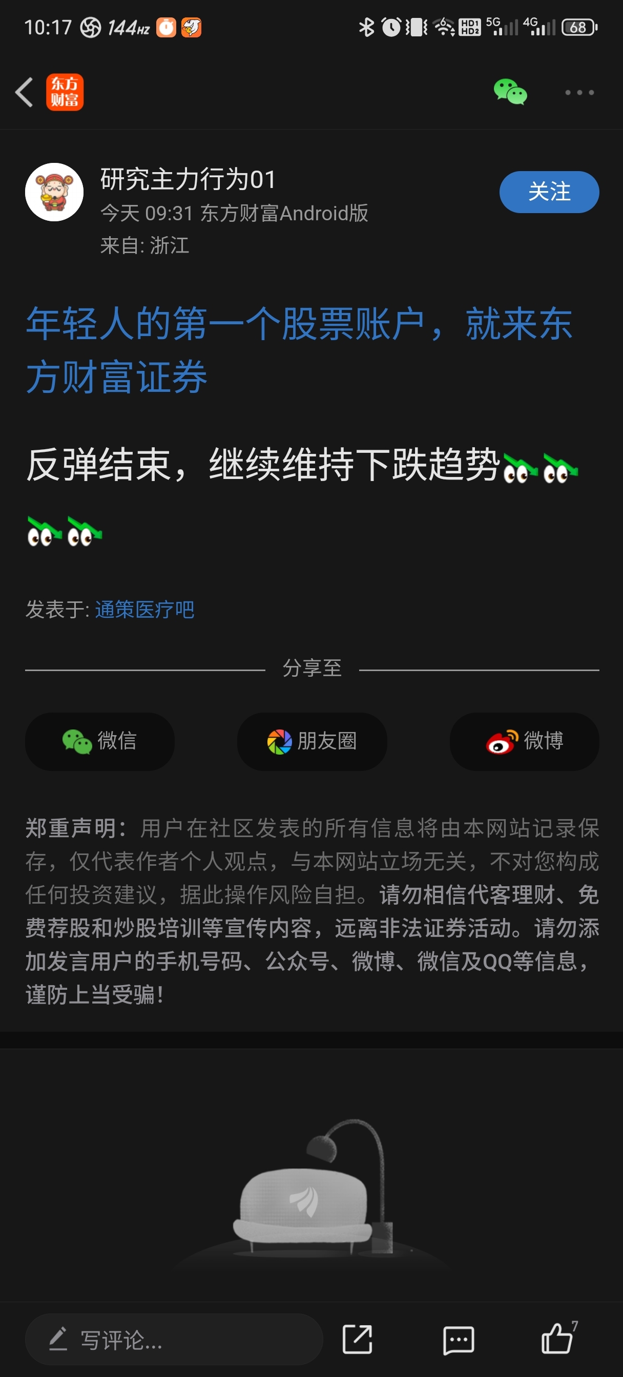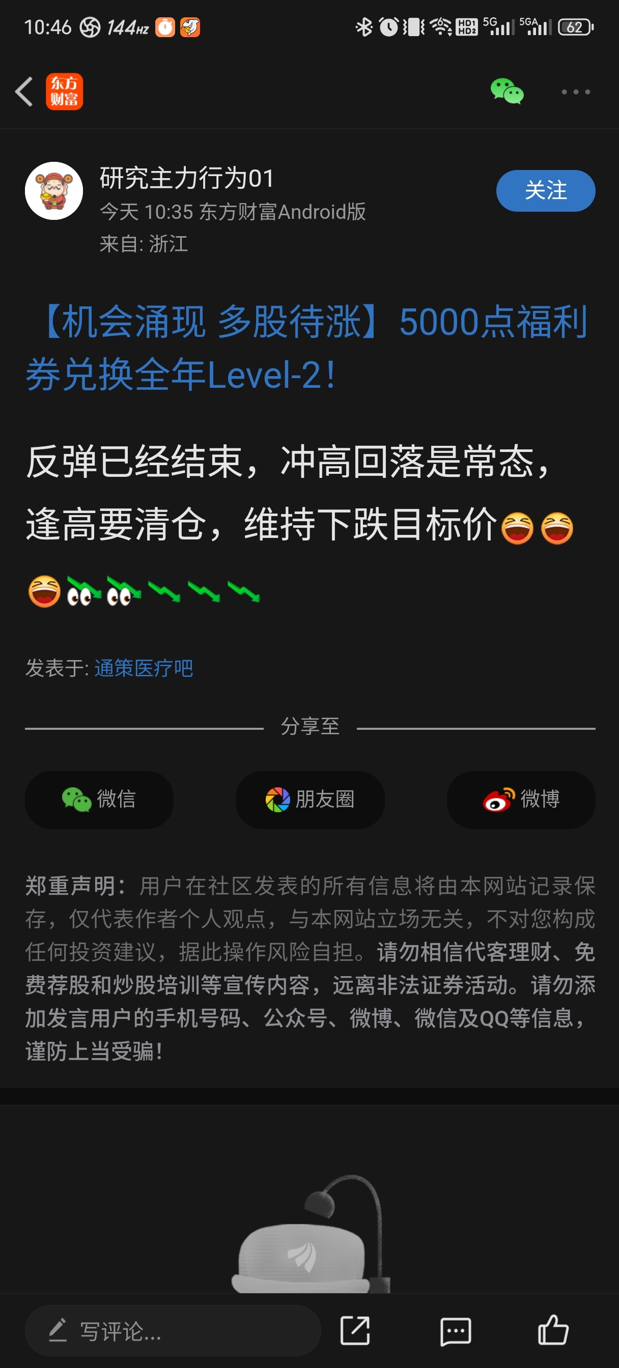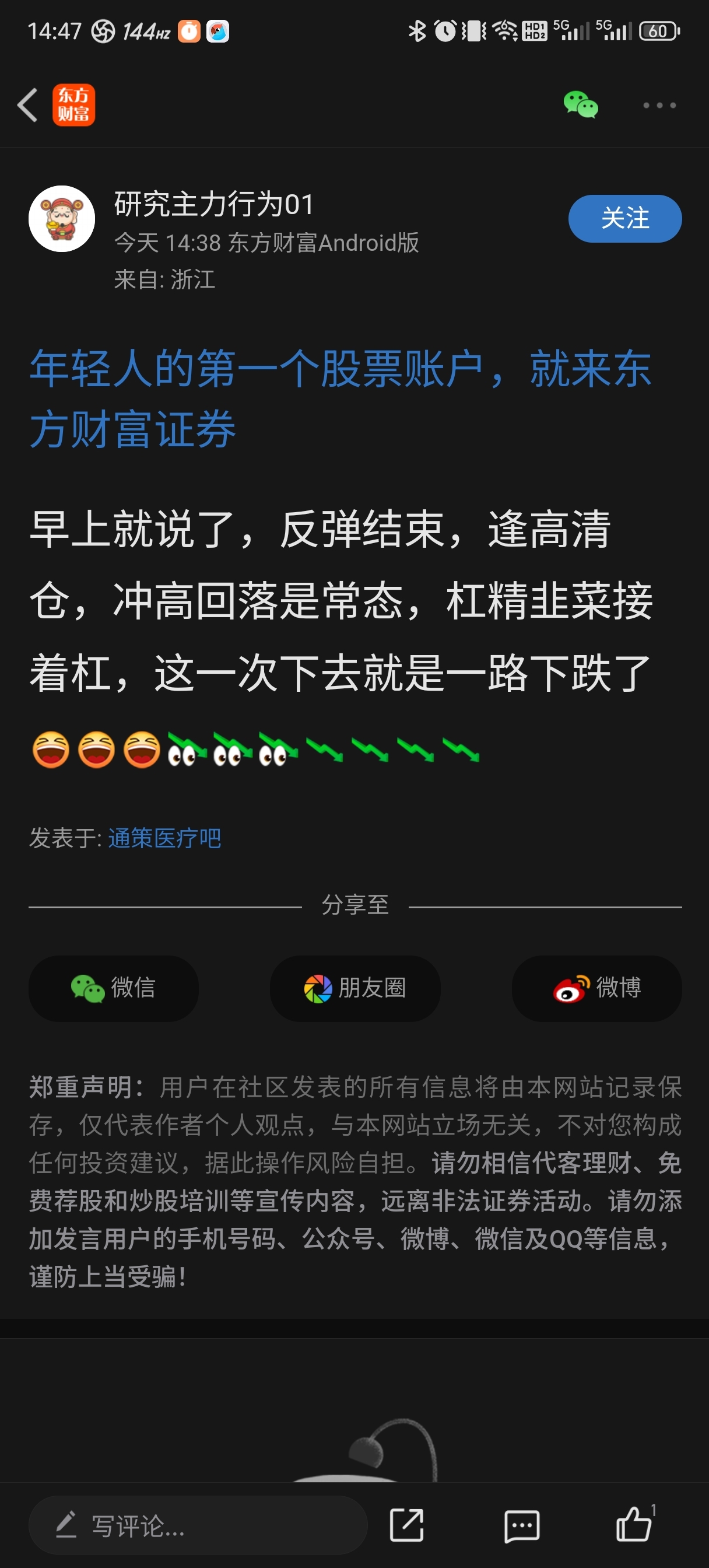 温馨提示: 1.根据《证券法》规定,禁止编造、传播虚假信息或者误导性信息,扰乱证券市场;2.用户在本社区发表的所有资料、言论等仅代表个人观点,与本网站立场无关,不对您构成任何投资建议。用户应基于自己的独立判断,自行决定证券投资并承担相应风险。《东方财富社区管理规定》