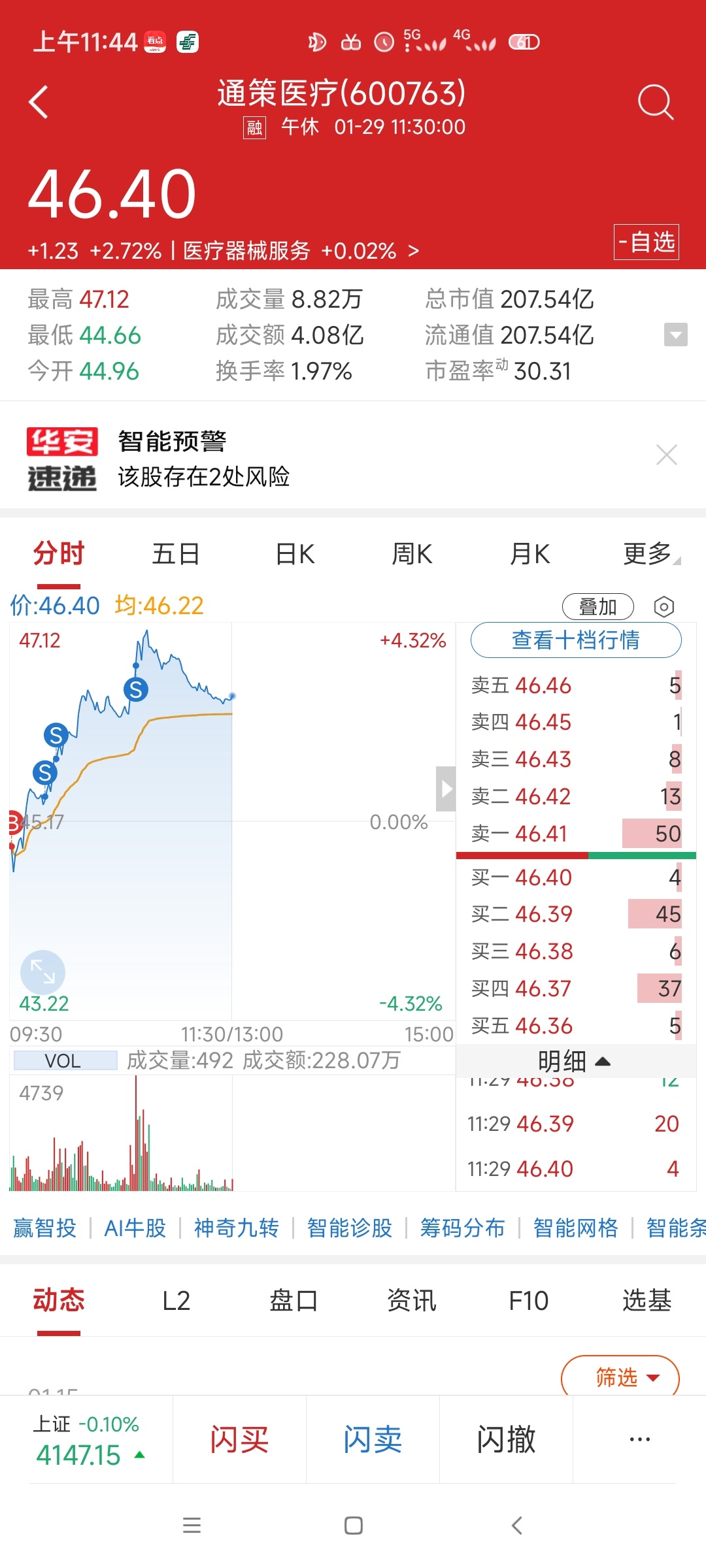 $通策医疗(SH600763)$ 今天做了一个反T
