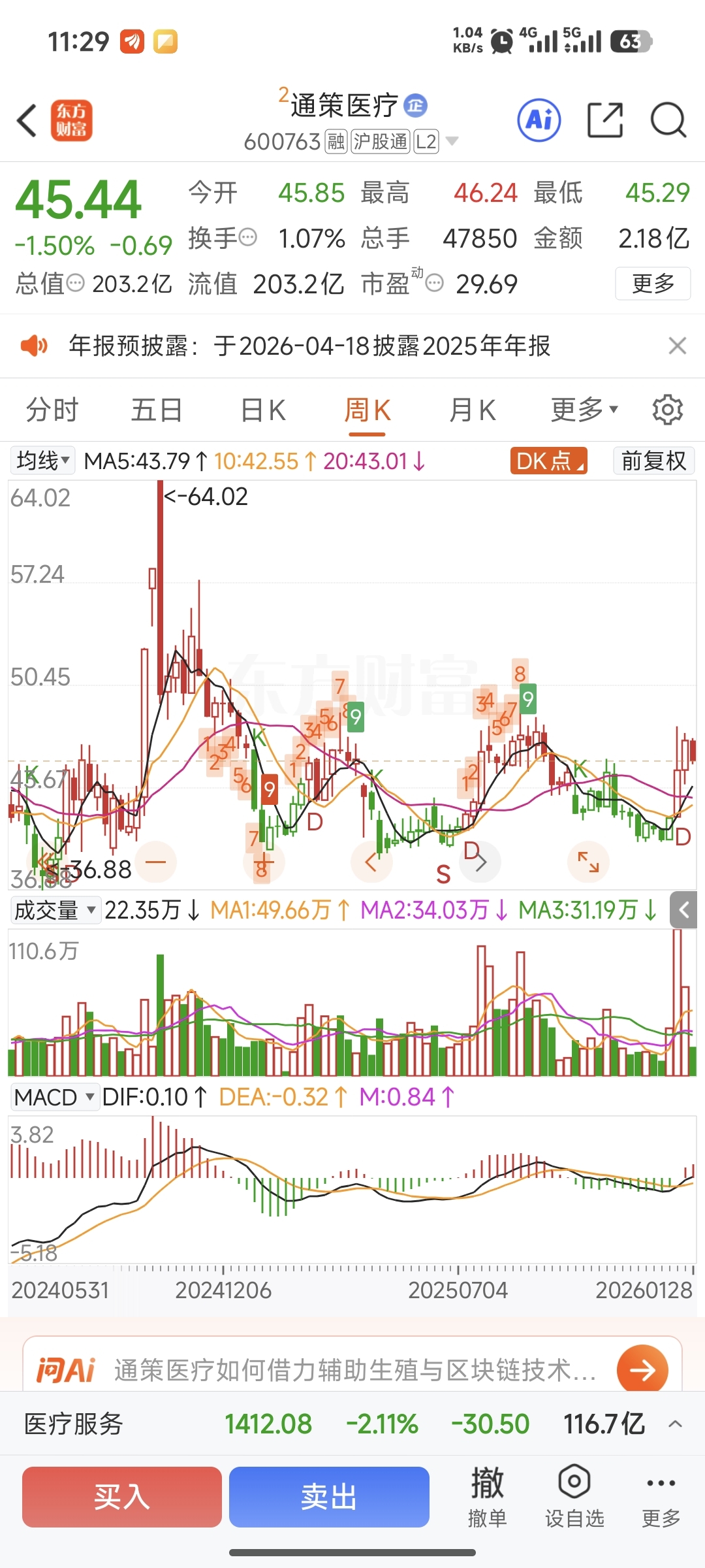$通策医疗(SH600763)$ 周线箱体顶部突破失败,还要往箱体底部回调。做好波段。