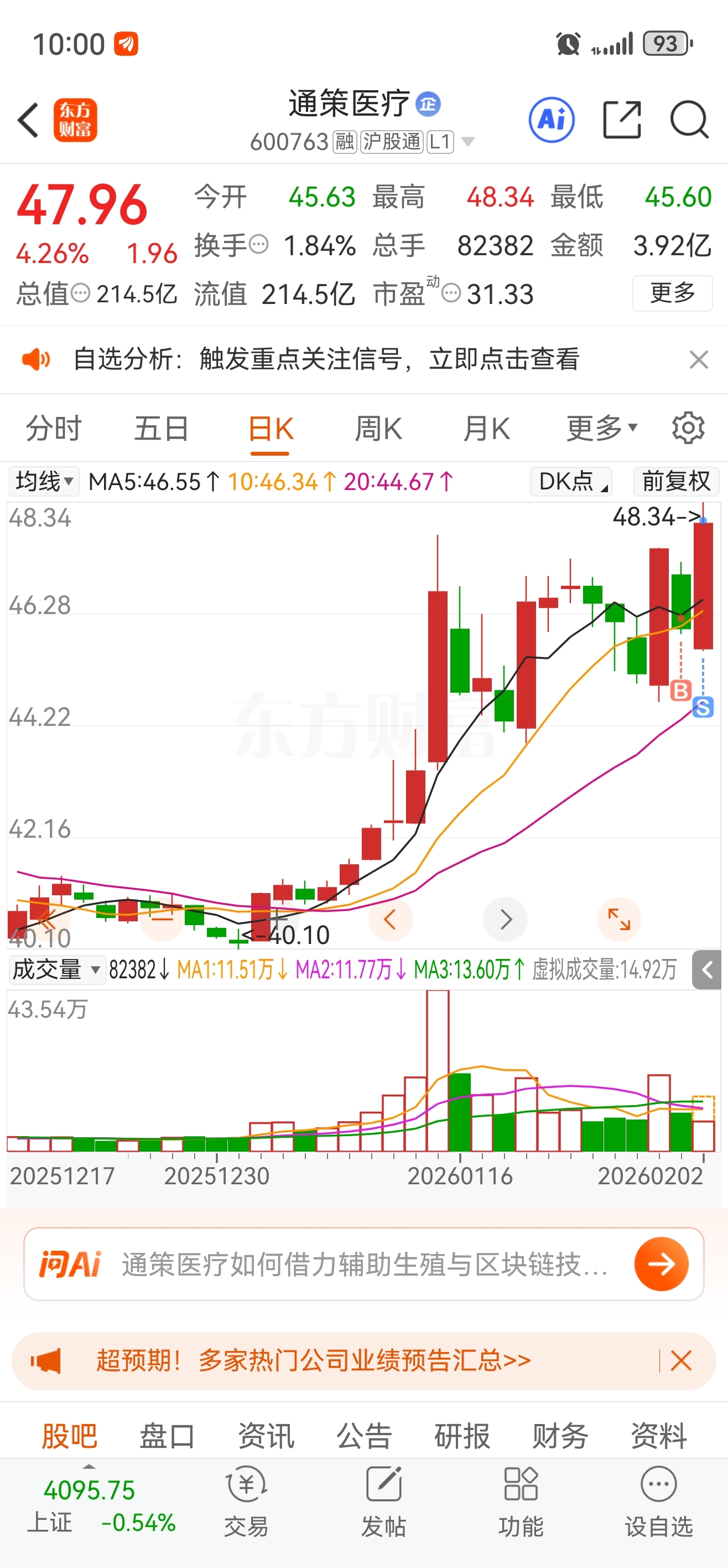 $通策医疗(SH600763)$ 我落袋为安了 留下的继续涨