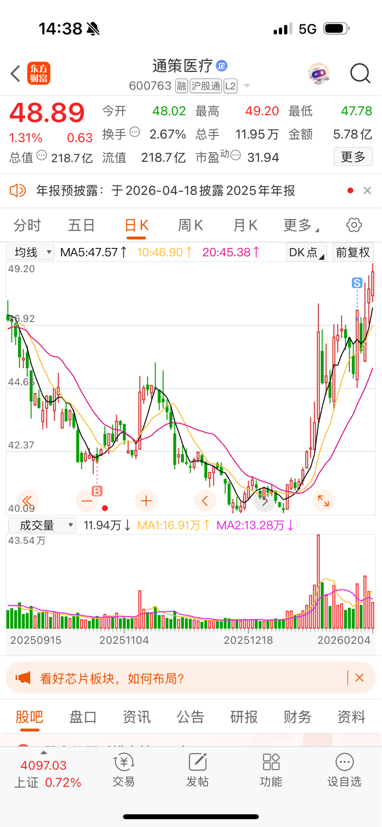 $通策医疗(SH600763)$ 上周四清仓了,一直在犹豫要不要进,卖飞了比亏钱都难受