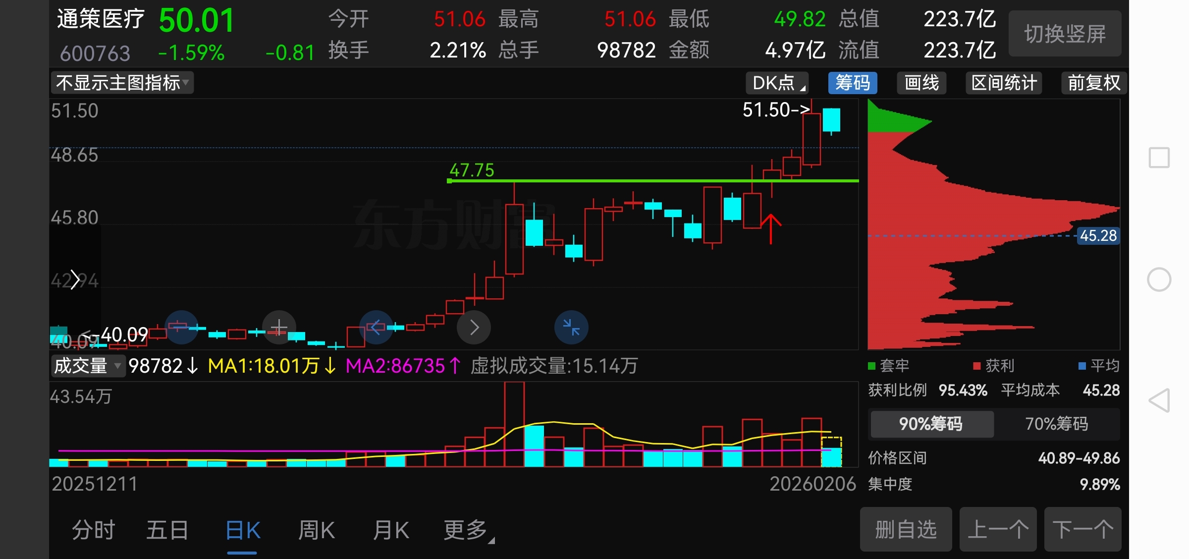 $通策医疗(SH600763)$ 缩量突破过三天,今天回踩也缩量,证明筹码锁的比较稳,后面想出货就要放出成交量
