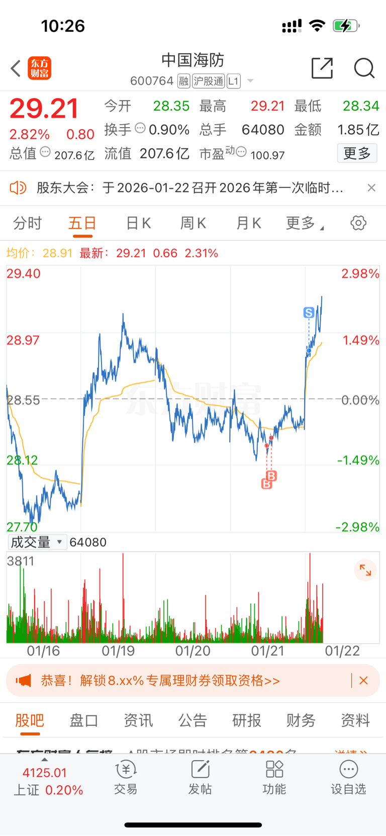 $中国海防(SH600764)$ 画个圈圈,卖啥啥涨,拿着的死不涨