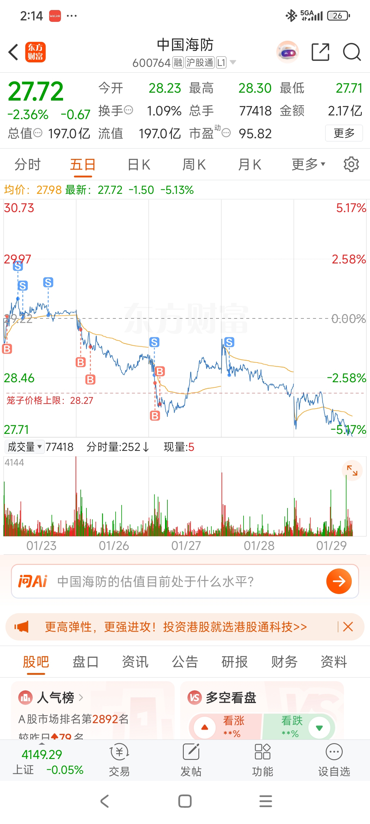 $中国海防(SH600764)$ 26再回来!跌的太猛了!