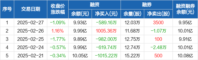 中航重机:融资净偿还589.16万元,融资余额9.93亿元(02-27)
