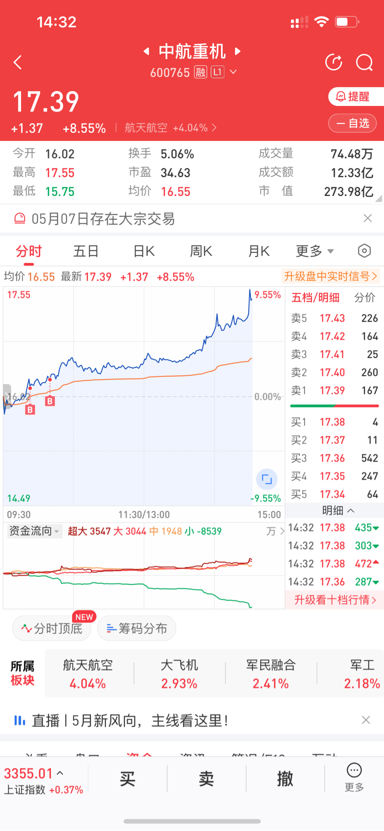 $中航重机(SH600765)$ 眼看你九个多点要涨停了,结果你又跳水了 哎,失望