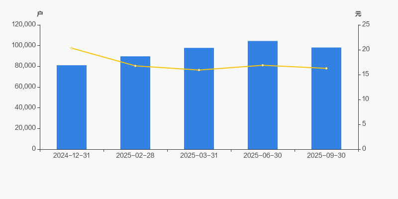 2024年12月31日至今,公司股东户数显著增长,区间涨幅为21.09%。2024年12月31日至2025年9月30日区间股价下降19.98%。