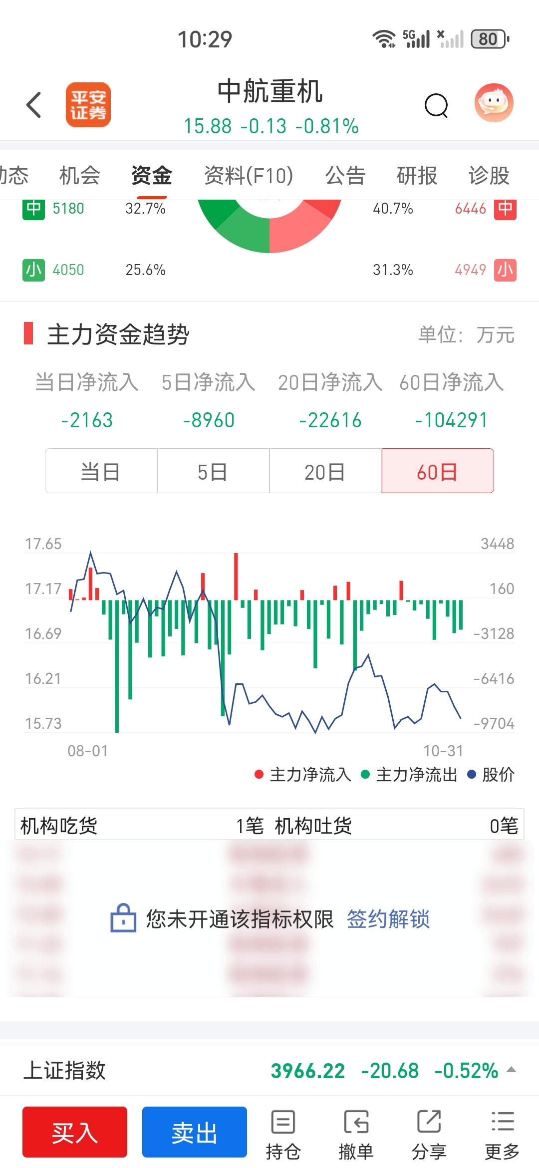 $中航重机(SH600765)$ 主力资金长期持续流出,别直迷不误了,股东机构持股没散户多能有好吗?没有换手率,不放量没戏的