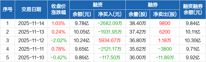 中航重机:融资净偿还2682.09万元,融资余额9.78亿元(11-14)