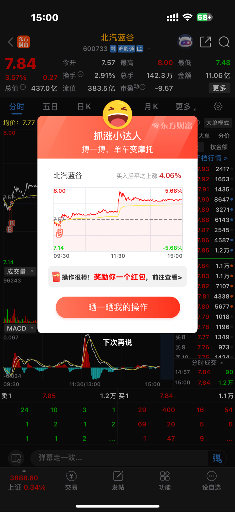 星期一你还是跌就回来!没赚钱就跑了不甘心