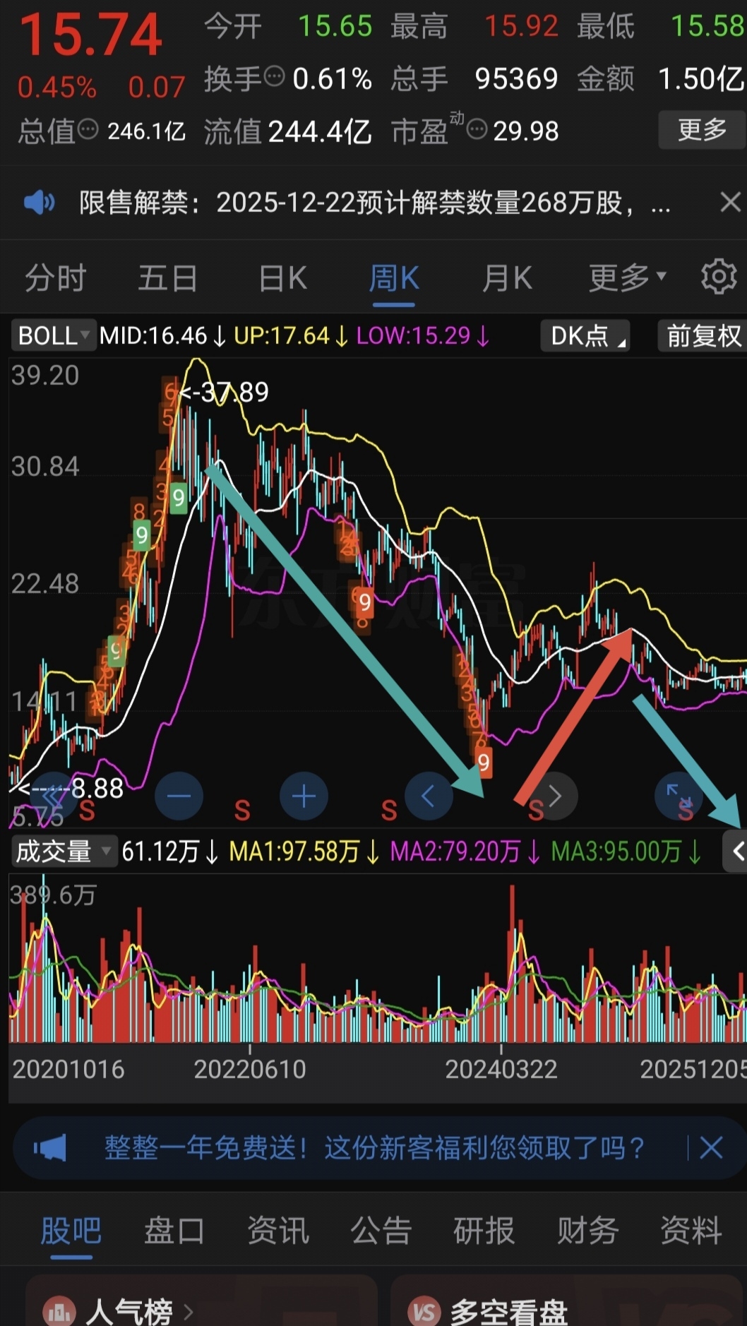 周线也即将破位,20-21年涨了近7倍,横有多长,竖有多高,反过来,竖有多高,横