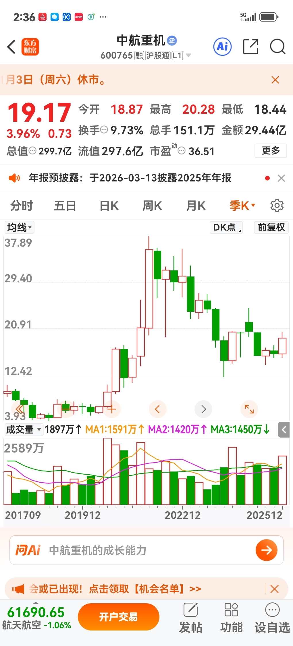 $中航重机(SH600765)$ 这个位置,出货绝对是谈不上的,那唯一的解释,就是借航天水尾洗盘,因为中航重机的主业是飞机机身锻件,军需和民航即将迎来放量