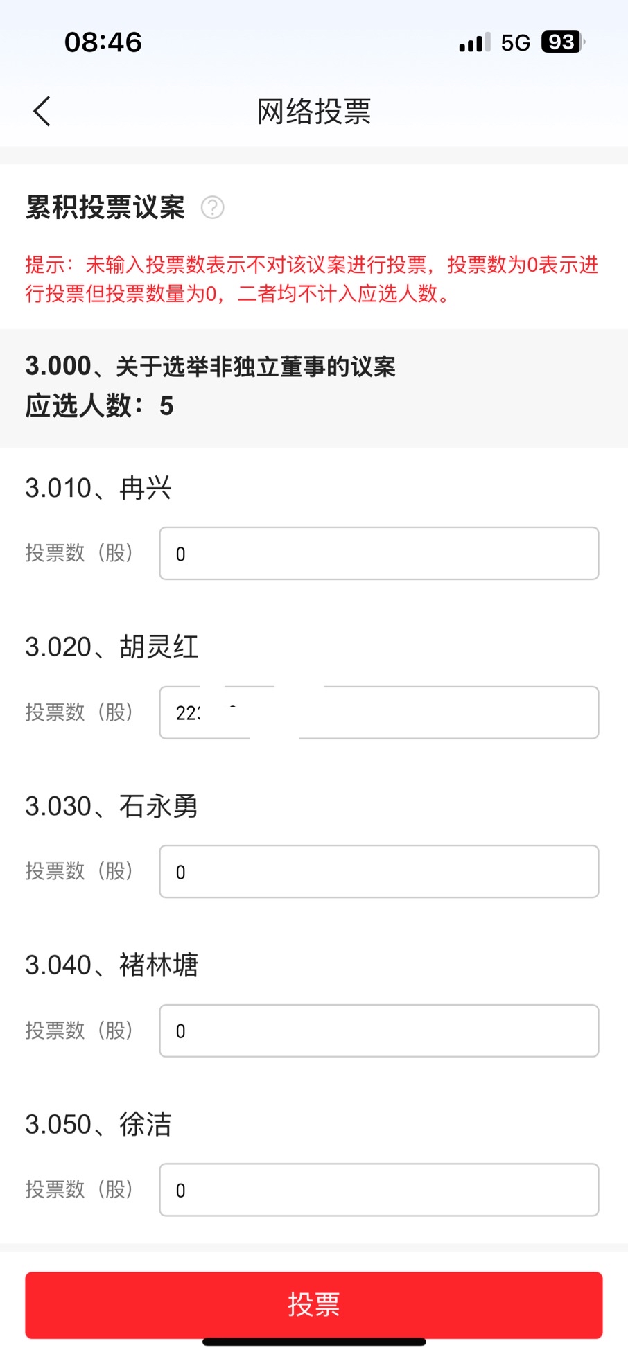 $中航重机(SH600765)$ $中航重机(SH600765)$ 请大家积极参加股东会并进行投票,具体登陆开户券商交易软件,找到网络投票功能,再找到中航重机股东会界面,对董事投票可以累积投票,即持有1股可以投5票,建议非独立董事都投给冉兴之外的其他四个人任意一人(如胡灵红),对冉兴投票数输入0。