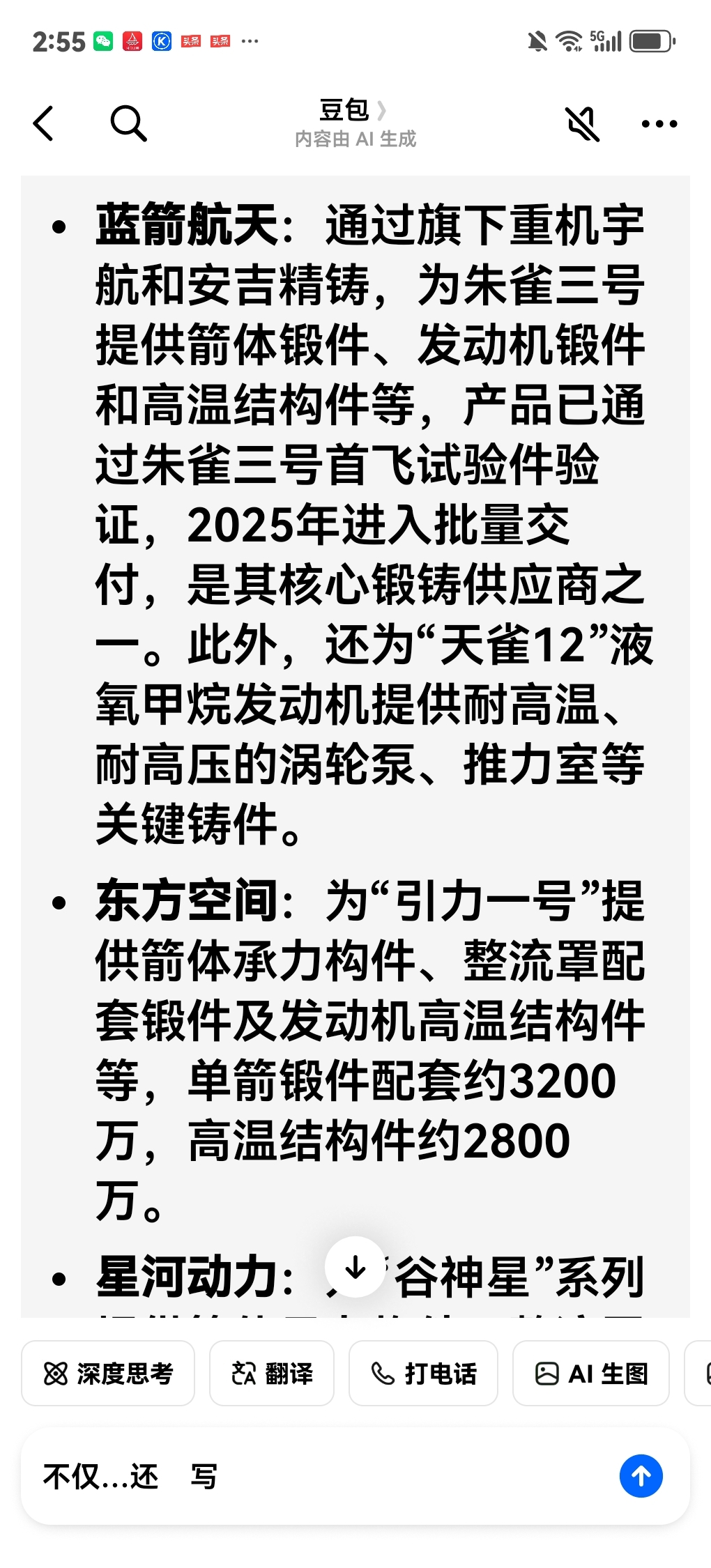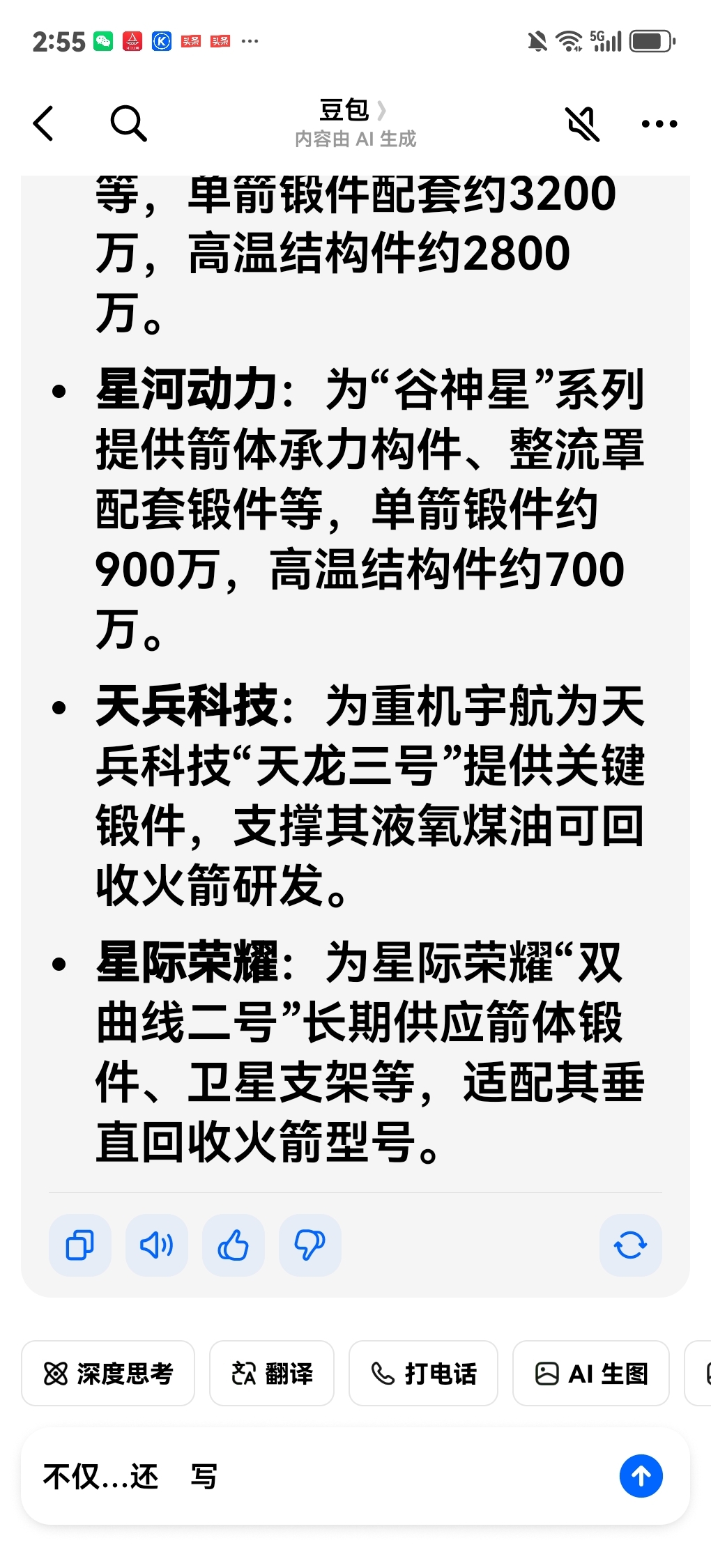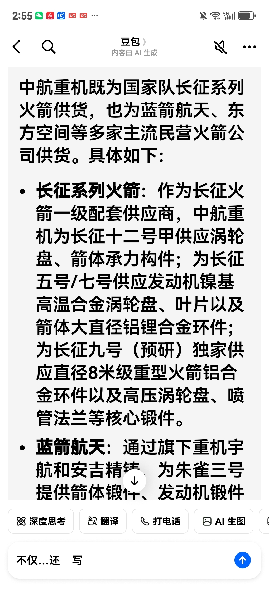 $中航重机(SH600765)$ 中航重机,真材实料供货蓝箭航天,东方空间,星河动力,天兵科技,星际荣耀,国家队长征系列火箭,单箭价值1600万-6000万,技术面季