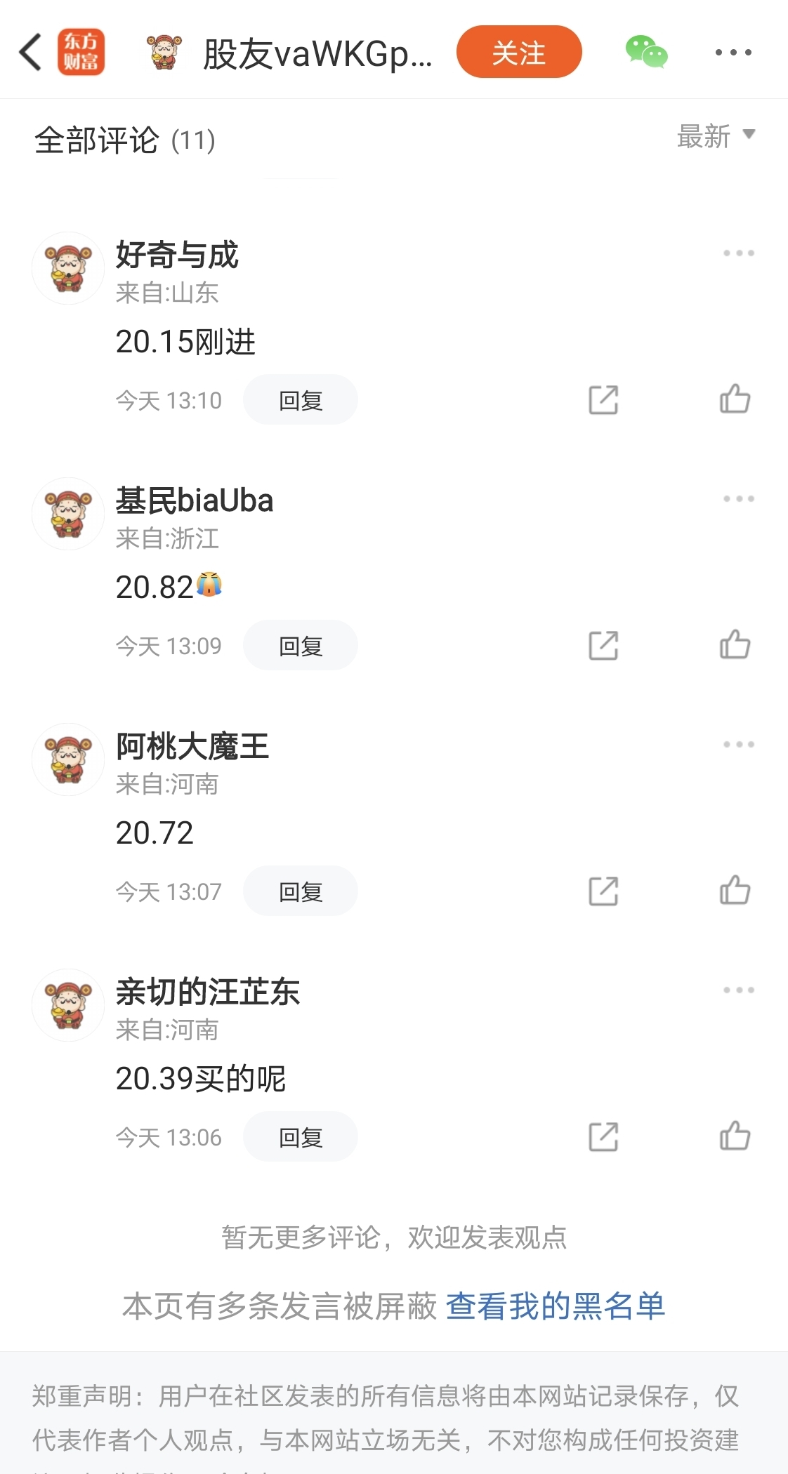 温馨提示: 1.根据《证券法》规定,禁止编造、传播虚假信息或者误导性信息,扰乱证券市场;2.用户在本社区发表的所有资料、言论等仅代表个人观点,与本网站立场无关,不对您构成任何投资建议。用户应基于自己的独立判断,自行决定证券投资并承担相应风险。《东方财富社区管理规定》