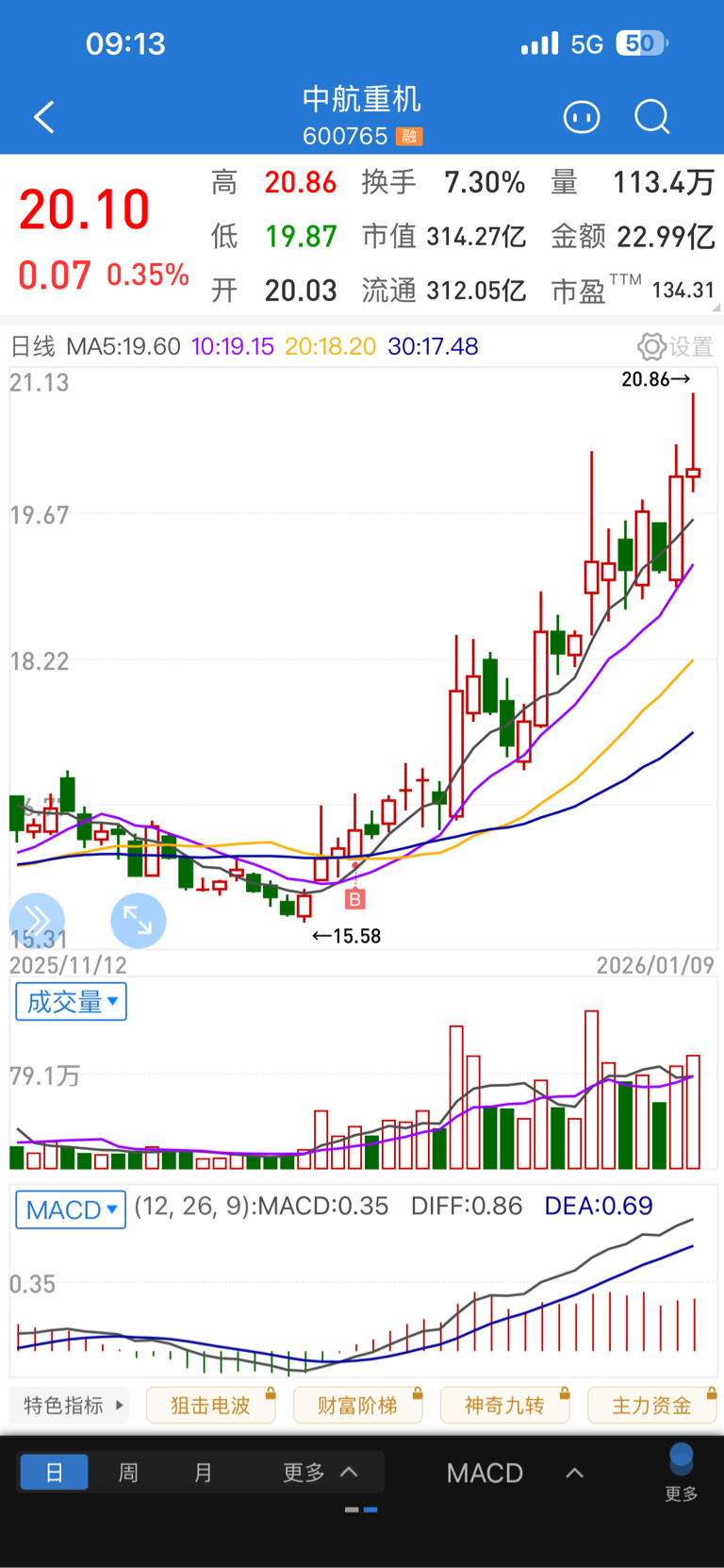 $中航重机(SH600765)$ 热点集一身,业绩好,买了个大底以为有大肉吃,可板块行情巳顶峰了呀