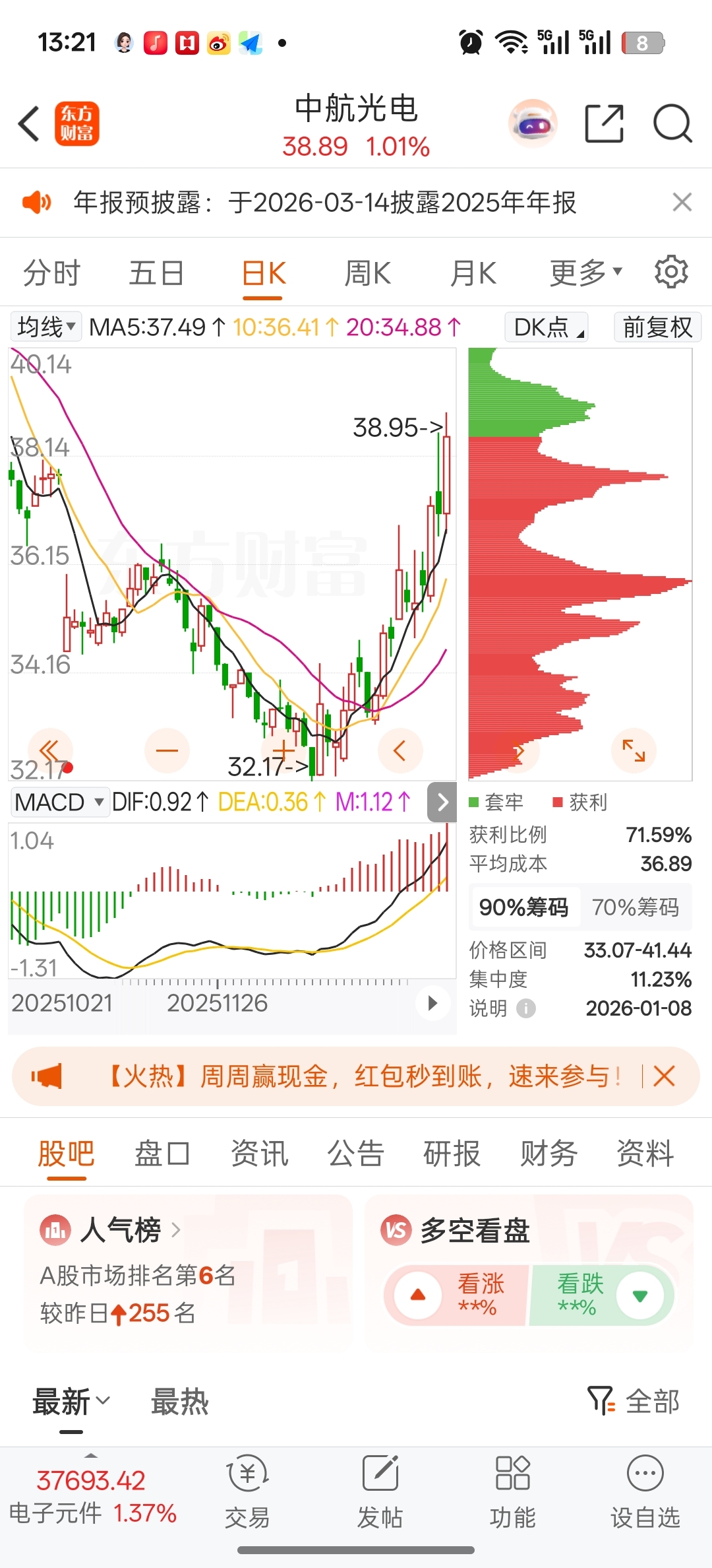 $中航重机(SH600765)$ 中航光电排名人气爆拉升,这轮应该轮动中航系发力了
