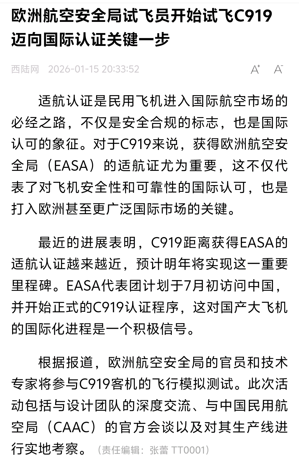 欧洲航空安全局试飞员开始试飞C919 迈向国际认证关键一步