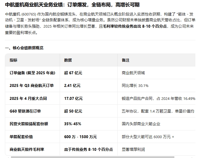 $中航重机(SH600765)$ 中航重机商业航天业务业绩:订单爆发,全链布局,高增长可期