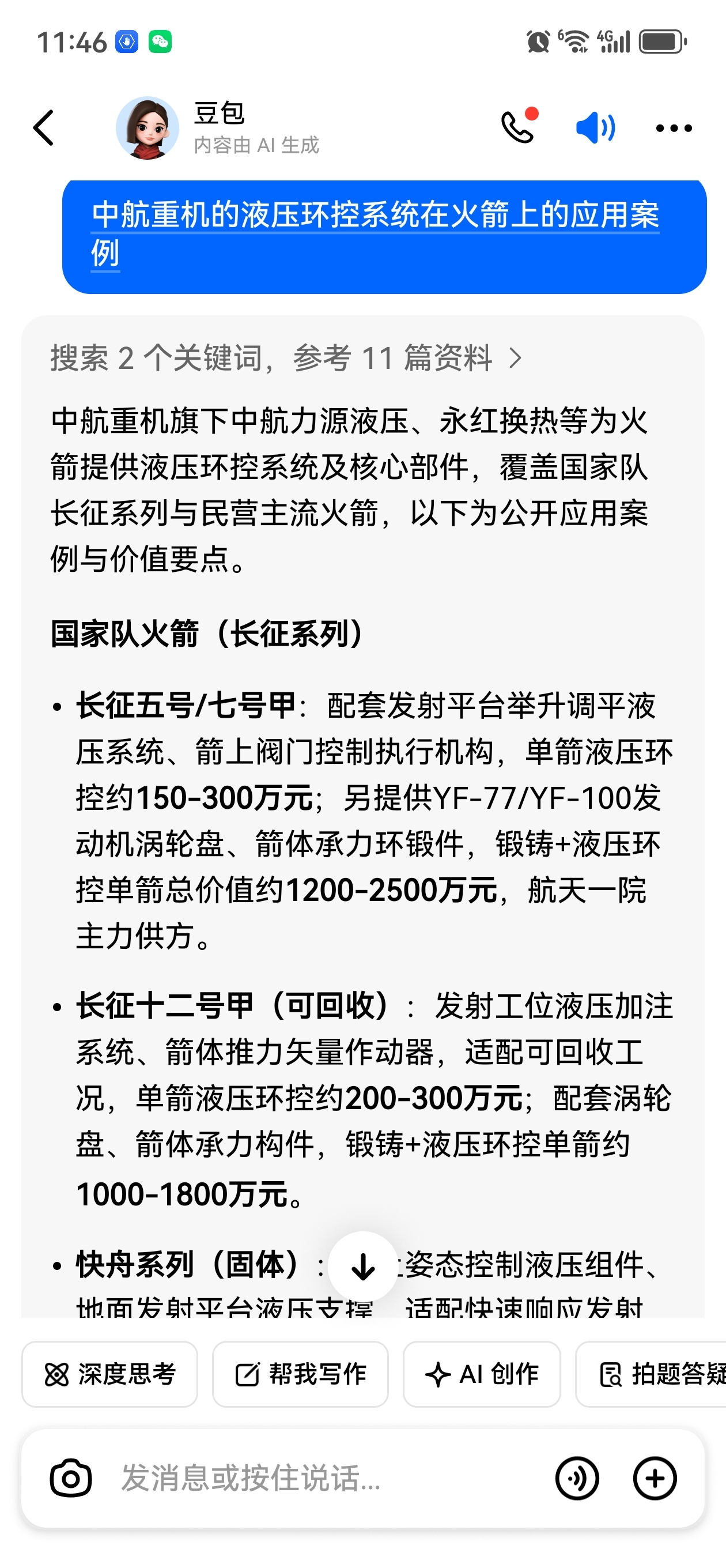 $中航重机(SH600765)$ 装睡,,,中航重机锻铸+液压环控在商业航天的发射环节 单箭配套2000万元。