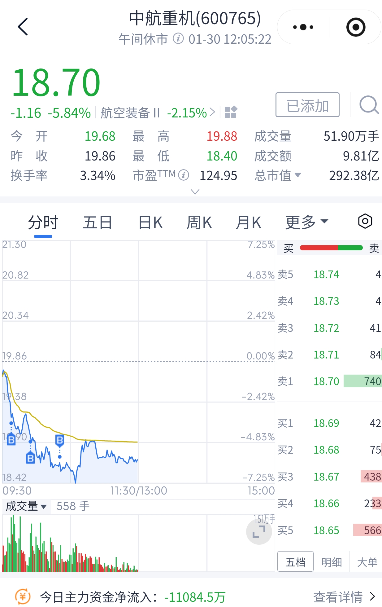 $中航重机(SH600765)$ 是不是暴雷了?昨天的走势就像是再出货。今天买进了