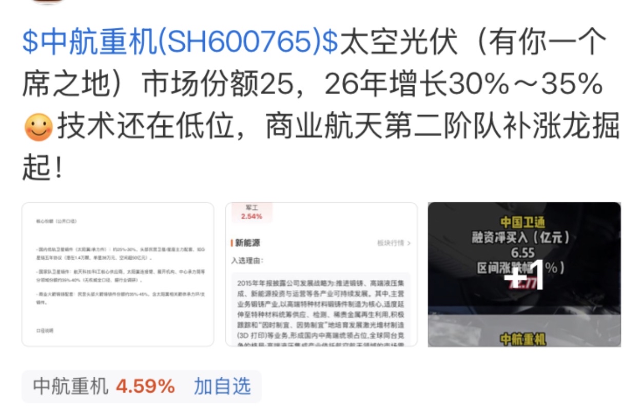 $中航重机(SH600765)$ 中科宇航+太空光伏