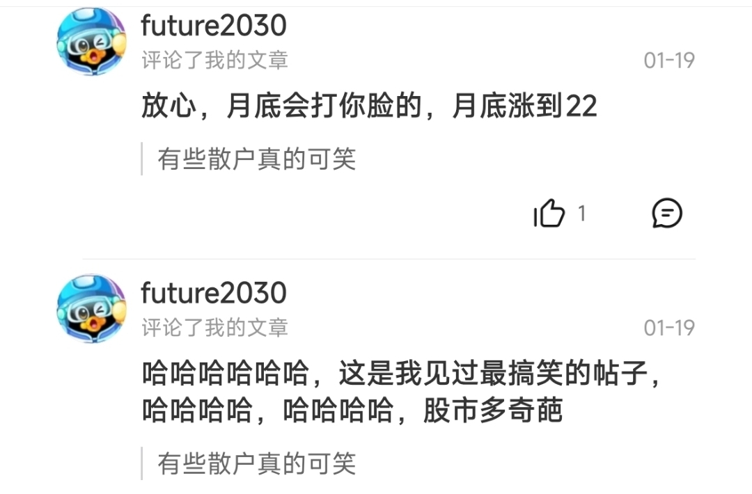 我为什么说有些人记吃不记打。1月19日上涨的时候,叫的可比今天凶多了。当时商业航