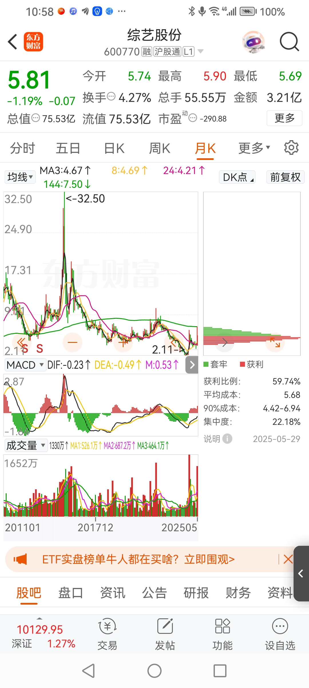 $综艺股份(SH600770)$ 还在卖?7.55肯定不是顶,本来就是历史大底,又有收购