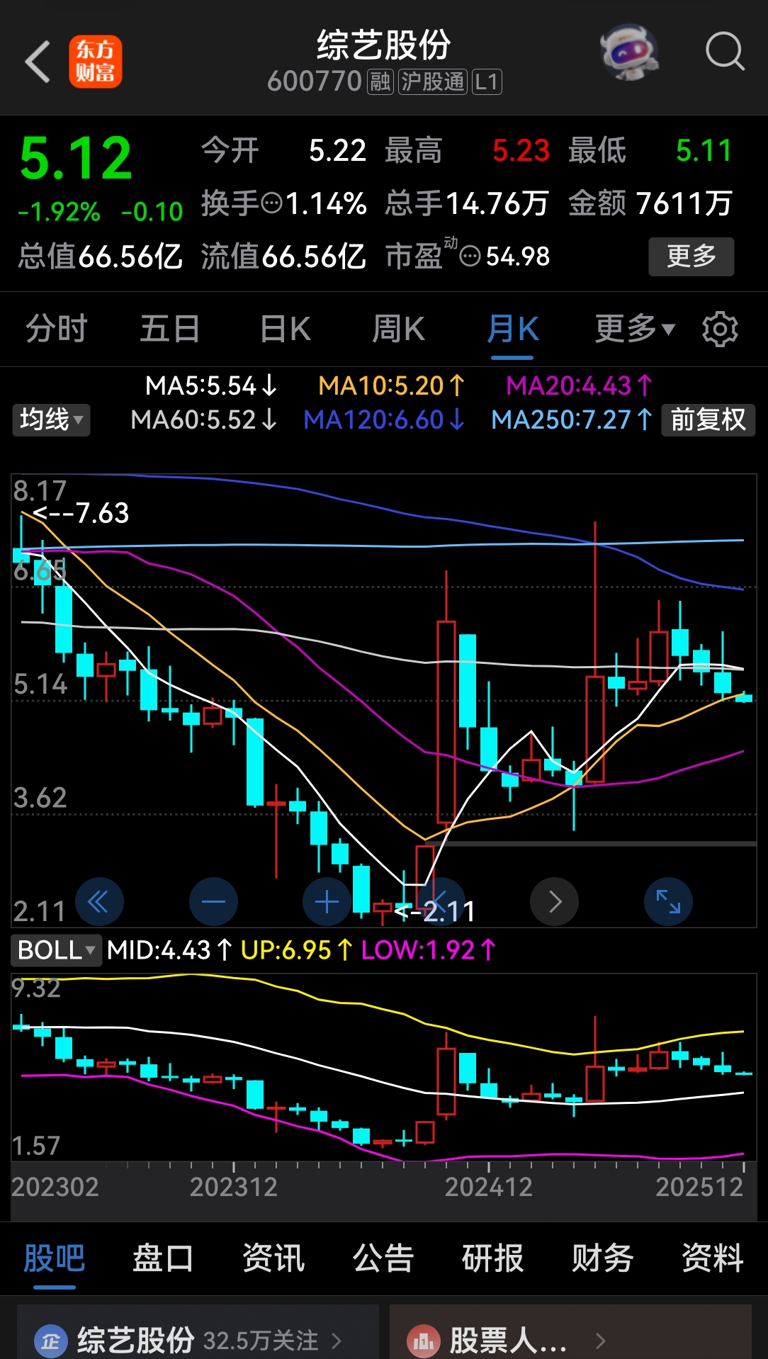 $综艺股份(SH600770)$ 按照惯例,肯定要破中轨线。