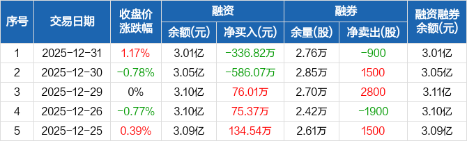 综艺股份:融资净偿还336.82万元,融资余额3.01亿元(12-31)