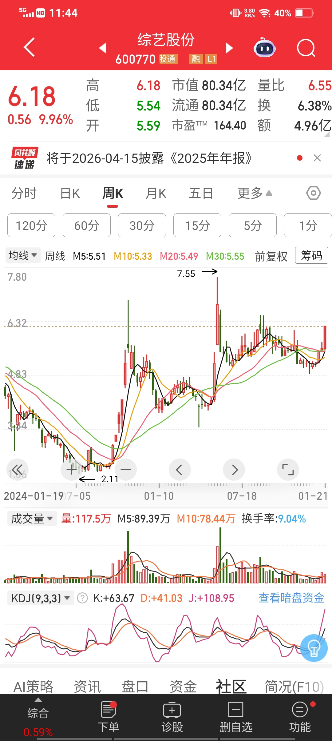 $综艺股份(SH600770)$ 周线才是逻辑。