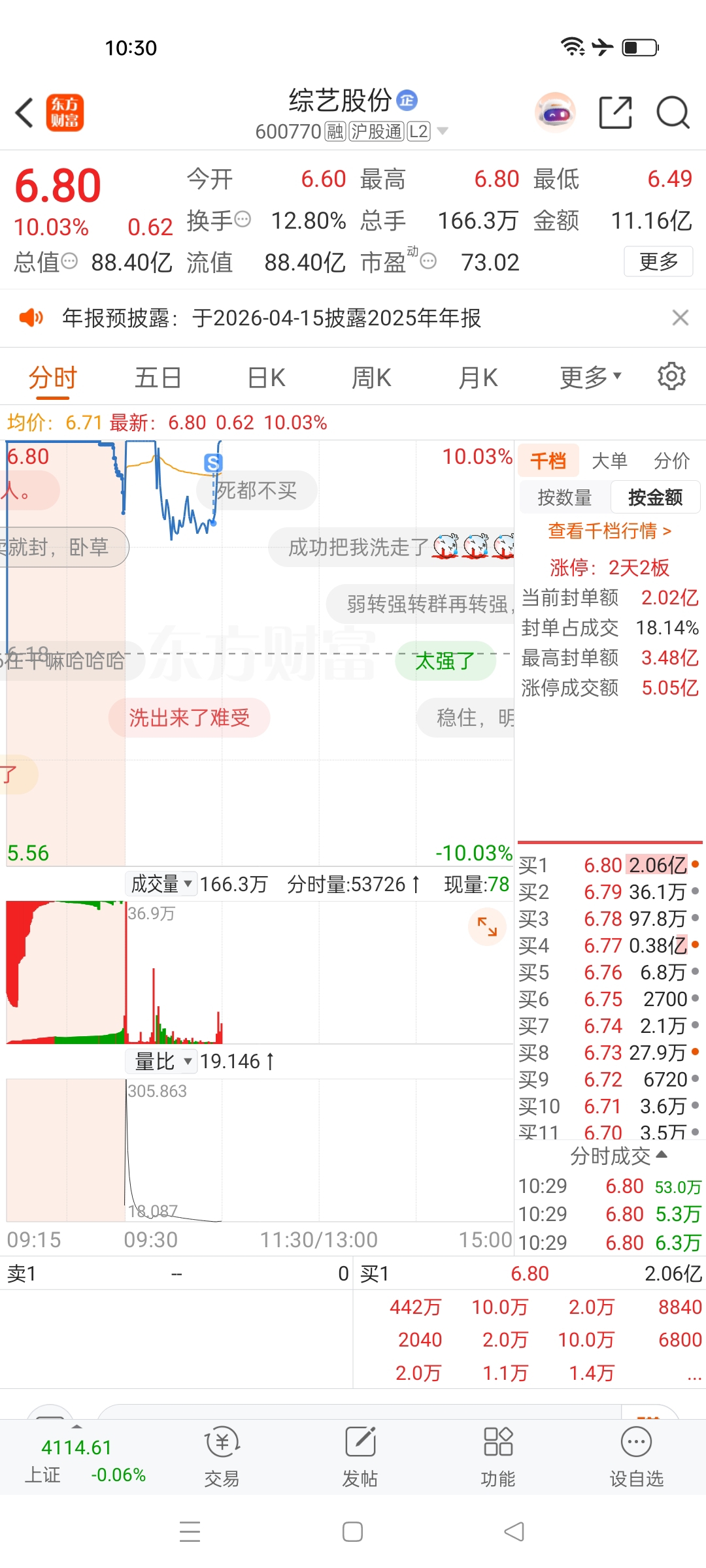 温馨提示: 1.根据《证券法》规定,禁止编造、传播虚假信息或者误导性信息,扰乱证券市场;2.用户在本社区发表的所有资料、言论等仅代表个人观点,与本网站立场无关,不对您构成任何投资建议。用户应基于自己的独立判断,自行决定证券投资并承担相应风险。《东方财富社区管理规定》