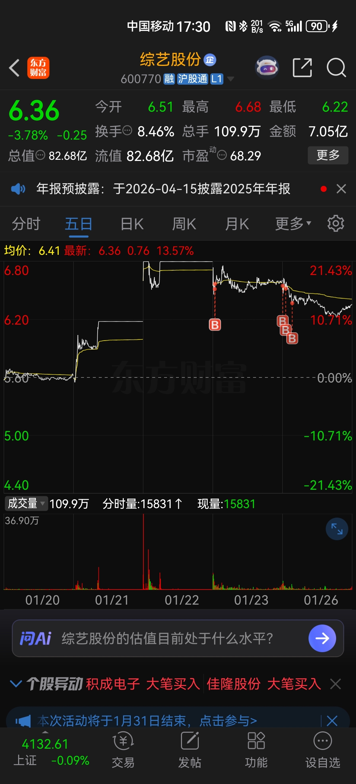 温馨提示: 1.根据《证券法》规定,禁止编造、传播虚假信息或者误导性信息,扰乱证券市场;2.用户在本社区发表的所有资料、言论等仅代表个人观点,与本网站立场无关,不对您构成任何投资建议。用户应基于自己的独立判断,自行决定证券投资并承担相应风险。《东方财富社区管理规定》