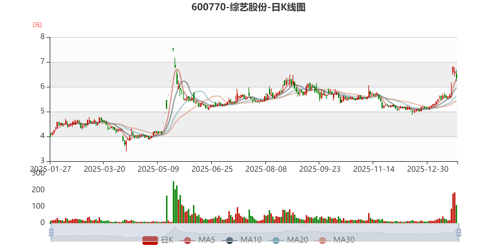 中证智能财讯综艺股份(600770)1月26日晚间披露2025年度业绩预告,预计2025年实现营业收入4.8亿元,同比增长37.97%;归母净利润1.1亿元,同比增长264.05%;扣非净利润亏损1300万元,上年同期亏损3648.89万元。以1月26日收盘价计算,综艺股份目前市盈率(TTM)约为75.16倍,市净率(LF)约2.41倍,市销率(TTM)约17.23倍。