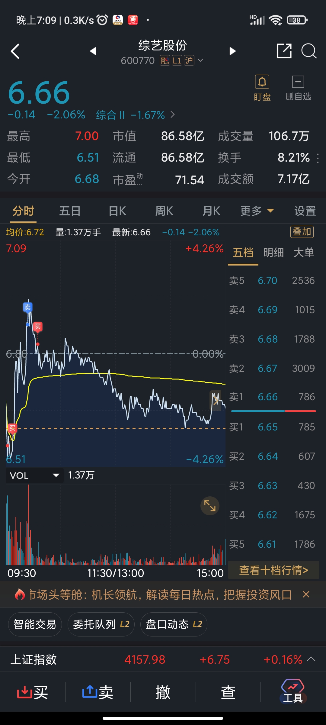 $综艺股份(SH600770)$ 今天这条长上阴线,就给吓破胆?还高位?这就是韭菜命怪不得谁